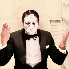Flan72 was surprised by CigarGunge90 with a big sloppy cream pie to the face