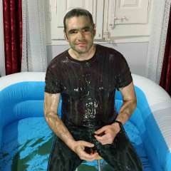 Steph_nageur got pulled into the shower by PreppyGuy with his clothes on